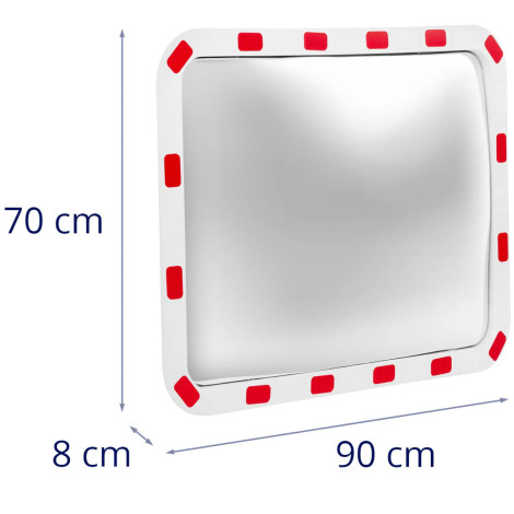 Rectangular street mirror with red-white reflections provides a wider field of view, facilitating parking and reversing. You can use them in garages, on private entries or parking lots. This will easily see everything that is a dead point.