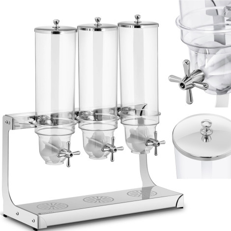 10011387Un dispensador práctico para los pétalos. Royal Catering Le permite almacenar y una dosificación conveniente de productos sueltos: cereales de desayuno, pequeñas galletas y galletas, dulces, nueces, frutos secos, café. Se utilizará donde sea un desayuno buffet, en hoteles, restaurantes o bistrach.