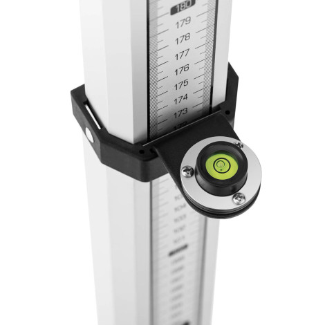 Altura ajustable, el parche de nivelación tiene una construcción de 5 segmentos, después de desplegarse, es de 5 m. La tira frontal tiene una escala expresada en CM con una división de encuestas (E), mientras que la parte posterior tiene valores expresados en MM.