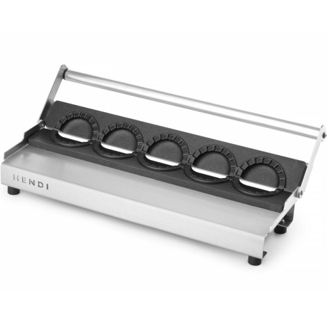 Preparando 5 albóndigas. Superficie de trabajo (zócalo de molde) terminó con un recubrimiento antiadherente para una fácil eliminación de albóndigas confeccionadas. El asa a lo largo de toda la longitud del molde permite el uso de una presión uniforme sobre todas las formas.