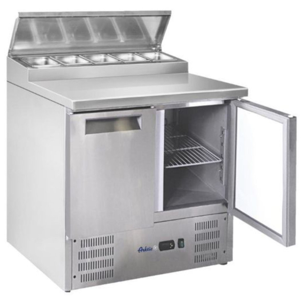 236222Mesa de refrigeración Ensalada de 2 puertas con marca de supermercado.