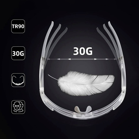 Las características más importantes: - - La ligereza excepcional asegura la comodidad. Gracias al peso de solo 30 g, las gafas casi no se sienten en la cara, lo que permite mucho tiempo conducir sin una sensación de incomodidad.