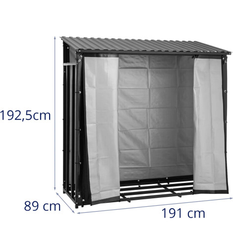 TARPA ja langev katusMis kaitseb puitu lume ja vihma eest. Suur raam on ideaalne väliseks kasutamiseks - terrassil, aias, garaažis või kodus. Stand oli valmistatud terasest ja talub koormust