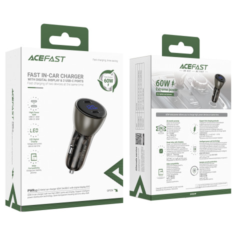 Autolaaduri acefast B10! See usaldusväärne seade kuni 60 W võimaldab kiiret ja samaaegset laadimist kahe seadme tänu kahele USB-C-C-porti. Varustatud LED-ekraaniga, laadija annab reaalajas informatsiooni laadimisväärtuste kohta ja selle metalli korpuse kohta tagab vastupidavuse ja elegantse välimuse. See toetab mitmeid kiireid laadimisprotokolle, pakkudes ühilduvust mitme seadmega, sealhulgas nutitelefonid ja tabletid. Acefast B10-ga saate nautida turvalisust tänu mitmetasandi kaitsele ja töökindlusele igas olukorras. Vaadake, kuidas see laadija saab oma reisi veelgi mugavamaks muuta!