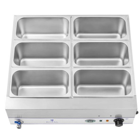 Tootja nimi: Rcbm-6ws-2000 BEMAR-vesi Royal Catering See võimaldab erinevate DAO ja tarvikute kütmist ja transportimist. RCBM-6WS-2000 mudel sobib töötamiseks restoranides, baarides, toitlustusettevõtetes, sööklates, hotellides ja muudes kohas HoReCa tööstuses. Seadmed on mahukas, sest sellel on 6 GN 1/3 konteinerit 150 mm sügavusega. Stabiilne seista võimaldab teil kütteseadet kõikjal määrata. BEMARU struktuur ja statiood oli valmistatud vastupidavast roostevabast terasest. Kasutatud materjali iseloomustab mehaaniline vastupidavus ja sile pind, mida saab kergesti puhastada. Ärata kraan hõlbustab vee eemaldamist paagist. Seadme võimsus on 2000 W. Temperatuuri saab reguleerida vahemikus 0 kuni 110deg C. BEMAR on varustatud LCD-ekraaniga ja küttetaseme näitaja juhtimisega. RCBM6WS-2000 mudel on powered 230 V pinge Omadused: