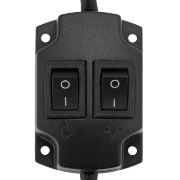 Vahemaad 31 cm seinast. 1,5 m toitejuhe tagab piisavalt vabadust postitada postitus kohas, mis meelitab tähelepanu kõige rohkem tähelepanu. Kaks lülitit võimaldavad teil aktiveerida sünkroonse mootori püsivate magneteid (PMSM) pöörlemiseks liikumiseks, samuti valgustus 35 LED-i ja 35 W.