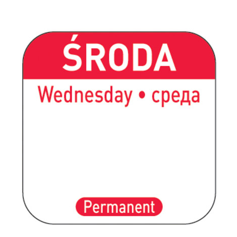 Tootja number: Hendi 850091 Toiduohutuse kleebised iga nädalapäeva päevale - kolmapäev - isekleepuvad kleebised, et hõlbustada pooltoodete ja valmistoodete määramist, et nad vastaksid gastronoomilistele ohutusstandarditele. - korduvkasutatavaks. - Plastist, metallidest ja klaasist valmistatud pindadest eemaldatav pindadest. - Igal nädalapäeval on märgitud erineva värviga. - Märgistus kolmes keeles: Poola, inglise ja vene keel. - lisamärgiste sisestamise koht. - Enne puhastamist konteinerid, kleebis tuleb kooritud. Parameetrid: - Mõõde: 25x25 mm - Rulli kleebiste kogus: 1000 tk. Tarne ulatus: - toiduohutus 1000 kleebis