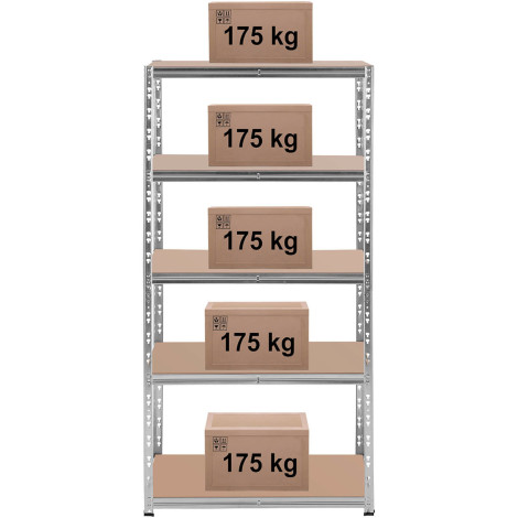 5 õmblusteta riiulid reguleeritava kõrgusega See võimaldab teil paigutada erinevaid asju. Igal riiulil on kandevõime 175 kg. Postitused toimus tsingitud terasest, on rooste vastupidavad ja vajavad vähe hooldust.