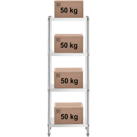 4 Riiulit saab salvestada samaaegselt palju riistad. Disain on stabiilne ja vastupidav, lisaks on ka lihtne hoolitseda, täidavad ka suurimaid gastronoomilisi standardeid, seega sobib see toiduga kokkupuutumiseks. Hõbedane värv annab mööbli elegantse ilme ja seda saab kasutada restoranides, hotellides ja eraruumides ning selle koost on väga lihtne ja ei vaja täiendavaid tööriistu.