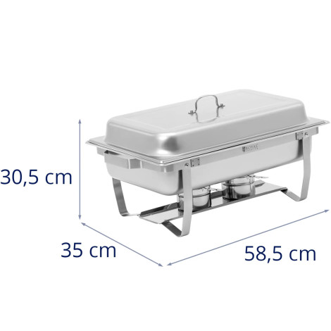 10013326Suured kaubamärgid brändi nõusid Royal Catering Nad töötavad suurepäraselt buffetide või toitlustamise sündmuste ajal. Nad säilitavad toitu ja söödete isuäratavate toitude. Jää kuubikute põhja saab ka külma roogade jahtuda. Tänu kokkuklapitava raamidele saate kergesti liikuda ja poeta BEMARY-d ilma palju ruumi võtmata. Küttekehad ei vaja elektrit.