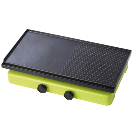 1024641Grid Grillimisplaat, millel on mitte-kleepuv kattega, mis on kohandatud kahe põletiga telkimispliidide jaoks. Riigis on kaks tsooni - sujuv ja perforeeritud, mis suurendab veelgi adhesiooni resistentsust ja aitab rasva. Grilliplaadi ka rasva kogumiseks on gimmer.