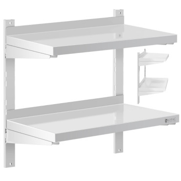 Tootja kood: 10011454 Roostevaba riputusriiul Royal Catering Ideaalis sobib teid oma köögis, tänu mahukas 60 cm pikk ja 30 cm pikkused topid, see mahutab suur hulk vürtse, koostisosi, väike köögiseadmeid või puhastusvahendeid. Avatud disain võimaldab lihtsat kasutamist (eemaldamine, postitamine). Seinakinnitus hõlbustab mis tahes interjööri majanduslikku arengut. Riiul on varustatud 2 Vastupidav 3,5 cm paksused topid ja tõstevõime kuni 20 kg. Kinnitusrailid võimaldavad end reguleerida nende kõrgust. Põhja riiulid on tugevdatud sulgudega. Köögi rippuva riiul oli valmistatud roostevabast terasest. See on resistentne kriimustuste, mõisate, kulumiste ja muude mehaaniliste kahjustuste suhtes. Materjali iseloomustab kõrge resistentsus korrosiooniprotsessi ja sileda pinna ja ümar serva on lihtne puhastada. Toote omadused: