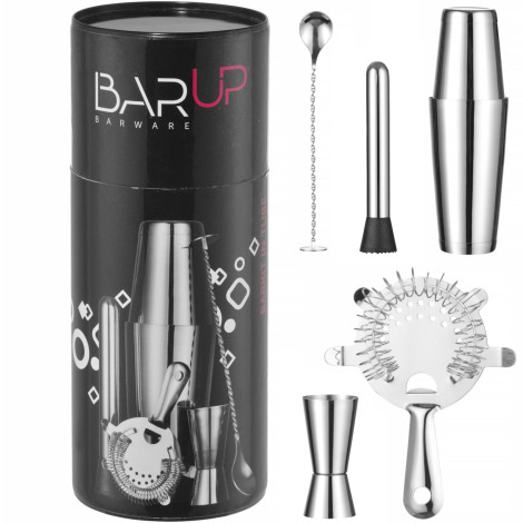 Jigger 50 ml: n kapasiteettia ja 25 ml. Hawthorne Bartender-siivilaaja, jossa on profiloitu kahva ja purettu jousi (tekee siivouksesta, voit myös käyttää sitä "Spring Whisk # 8221) sopii täydellisesti shakeraksi, täysin erottaa pieniä jään, hedelmiä ja yrttejä. Muddler (Barman laasti), jossa on hammastettu pinta, nopeasti murskata hedelmiä ja yrttejä.