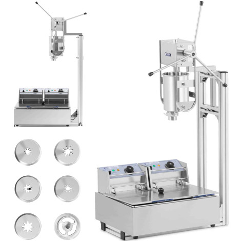 10012093Koneen merkki Royal Catering Voit tehokkaasti puristaa taikinaa espanjalaisille munkkeja ja sitten heidän paistaminen syvälle öljyyn lämpötilassa