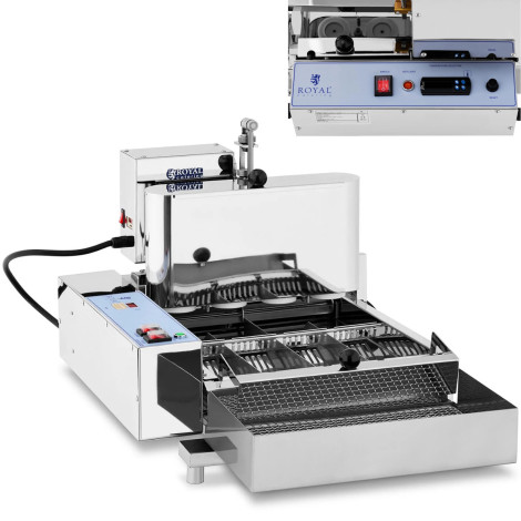 960 DONUTS tunnissa. Taikina annostellaan säiliöstä suoraan kuumaan öljyyn. Valmiina toisella puolella lahjoittaa automaattisen mekanismin kääntyy. Paistettua substituoituun astiaan (ei sisälly toimitukseen). Laite voi tuottaa
