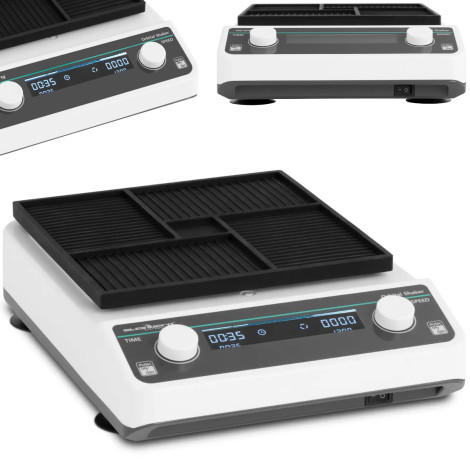 50 - 1200 rpmTällä tavoin tuottaa aina sovitettua testisarjaa. Ajastin (1 min - 8 h) varmistaa, että tutkimus olisi tehtävä tarkasti. Shaking-alusta, jossa on 25 x 15 cm mitat, tarjoaa paljon tilaa näytteille, esim. Lasiastioissa ja kumimattojen ansiosta ne ovat pysyviä liukumattomalla pinnalla sekoitusprosessin aikana. Levyllä voidaan myös levyn neljä mikrotiitterilaattaa. Shaker toimii optimaalisesti valittujen asetusten mukaan, mikä tarjoaa erinomaisia tuloksia. Muovisen laitteen (ABS) muotoilu on erittäin vakaa ja mukautettu laboratorion jokapäiväiseen työhön.