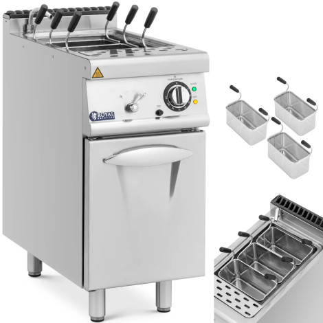 napauta, Syöttöletku kaappiin ja ulosvirtaus ZG 1/2: n liittämisellä. Kolme pasta korit ja kaksi erillistä vesisäiliötä mitat 30 x 45 x 17 cm, joiden avulla voit valmistaa eri määriä pastaa. Korit auttavat tukemaan pastaa asiakkaan toiveiden mukaan.