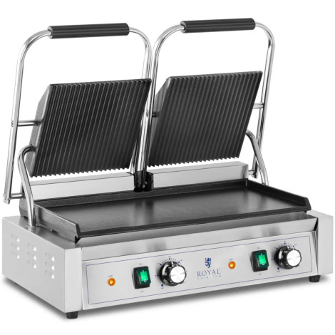 10011990Mark's Grilli Royal Catering Se on ammattimainen lämmityslaite, joka on suunniteltu ravintoloihin, kahviloihin, pikaruokiin, ravintoloihin sekä yksityisiin keittiöihin. Grillauslevyt ovat ihanteellisia liharuokien, vihannesten, paahtolevien ja paninin valmistukseen. Äärettömän vaihtelevan lämpötilan säätelyn ansiosta