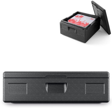 Integroidut kahvat kuljetukseen, lastaamiseen tai purkamiseen, Ja sivuseinien sisällä erityinen profiili, joka helpottaa astioiden poistamista. Se on erittäin kevyt, jossa on päällystetty kansi, joka on suunniteltu myyntiin ja korkeisiin ja mataliin lämpötiloihin.