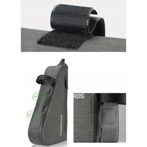 Kiinteä ja vakaa kiinnitysEi ole mitään pahempaa pyöräilyä kuin pussi, joka liikkuu ajon aikana. Rockbros AS-017 -laukku takaa vakaan kiinnityksen neljän laajan tarranauhan ansiosta. Nämä nauriit tarjoavat pussin kiinnittämisen polkupyörän runkoon, joka suojaa sisältöä ennen kuin putoat jopa epätasaisilla teillä.