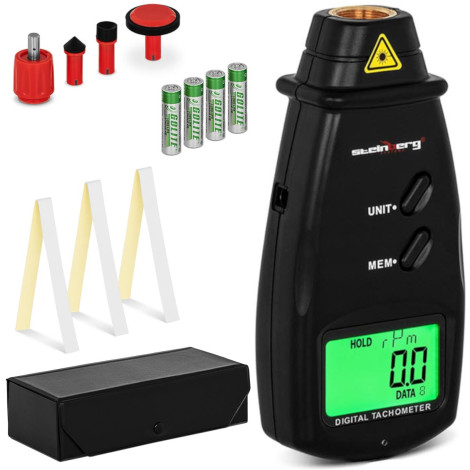 10030406Digitaalinen kierroslukumittari Saksalainen merkki Steinberg Systems Se on hyödyllinen, kun tarkistetaan moottoreiden, mototien, sorvien, tuulettimien, porausten ja muiden sähkötyökalujen pyörimisnopeus ja keramiikkapyörät.