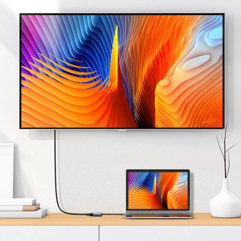 USB-C-videodapteri - HDMI + VGA Ugreen. Tämä pieni lisävaruste helpottaa modernin kannettavan tietokoneen televisioon tai projektoriin VGA- tai HDMI-kaapelilla.