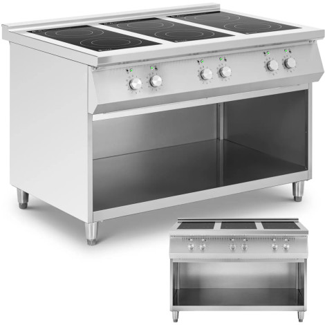 10013297Induktiokotelo, jossa on brändi Royal Catering Se antaa energian kokata ruokia kuudella polttimella. Kuumennuspinnan alla olevat johtavat kelat luovat vaihtelevan magneettikentän. Tämä tarkoittaa, että vain potiloita ja pannut myönnetään. Alone induktiolevy pysyy viileänä. Vahvien polttimien ja avoimen rakenteen ansiosta varastotila, joka sopii täydellisesti kaikentyyppisiin ammattimaisiin ruokiin.