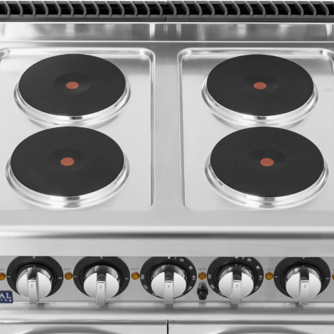 10013405Sähköinen liesi, jossa on uuni Royal Catering PRO 730-sarjasta Se on toiminnallisen suunnittelun ja innovatiivisen teknologian yhdistelmä. Valmistettiin kestävästä