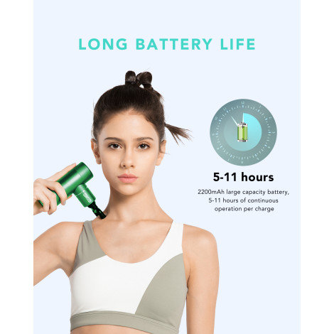 - - Fournit jusqu'à 11 heures de travail. Le masseur a une batterie de haute qualité intégrée d'une capacité de 2200 mAh,