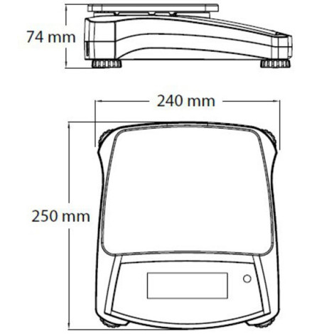 - - dimensions de la balance (l x p x h) : 240 x 250 x 74 mm