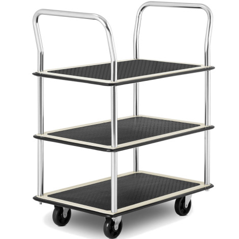 10061353Chariot à étagères de la marque MSW sera utile dans les hôtels, magasins, entrepôts, grossistes pour le transport d'objets lourds de différentes tailles. La construction du chariot est faite