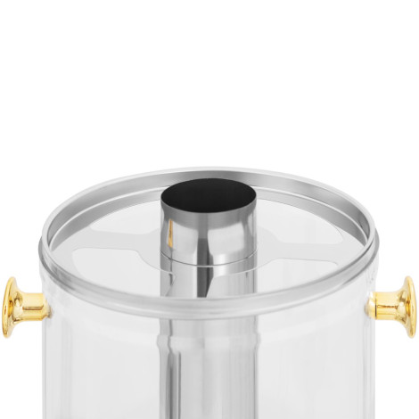 2 x 8 l. Un robinet, une base et un couvercle étaient en acier inoxydable, tandis qu'un récipient cylindrique avec un diamètre