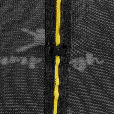 Une grande élasticité est due à 60 ressorts de haute qualité d'un diamètre de 3 mm. Trois pieds doubles stables sont fabriqués en acier durable. Le tapis de saut est réalisé en polypropylène élastique et résistant. Les fermetures latérales sont rembourrées avec une mousse de 16 mm d'épaisseur et sont équipées d'une protection contre les intempéries faite en polyéthylène et PVC. La sécurité d'utilisation est assurée par le rembourrage, la protection des ressorts ainsi que le filet.