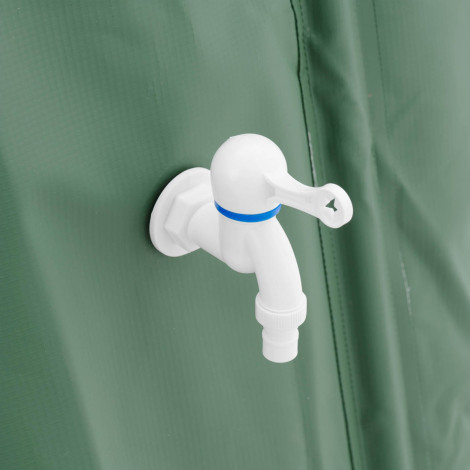 1000 l. Cela fonctionnera sur un ménage, sur le terrain, sur un camp ou un complot. Le conteneur est facilement réglé, le couvercle avec un PVC résistant au tourment est entraîné en utilisant des barres en plastique assurant la stabilité. Dans le couvercle, il y a un trou pour la drainage de l'eau de pluie à l'intérieur. Le filtre maillé empêche l'intérieur de la contamination et des feuilles. Pour une gestion optimale de l'eau, le conteneur dispose de trois sorties avec des filtres qui maintiennent la propreté de l'eau. Le robinet vous permet de remplir la boisson en conserve, la bite de drain a une connexion