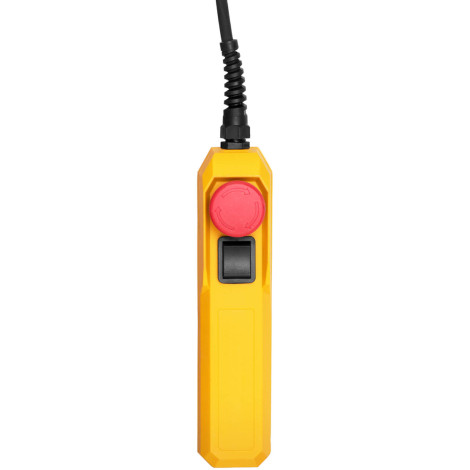Pilote Il est connecté à un dispositif utilisant un câble long, ce qui vous permet de contrôler l'équipement à partir d'une distance de sécurité. L'interrupteur d'urgence sur la télécommande arrête le périphérique en cas de danger. Le crochet de cargaison est équipé de