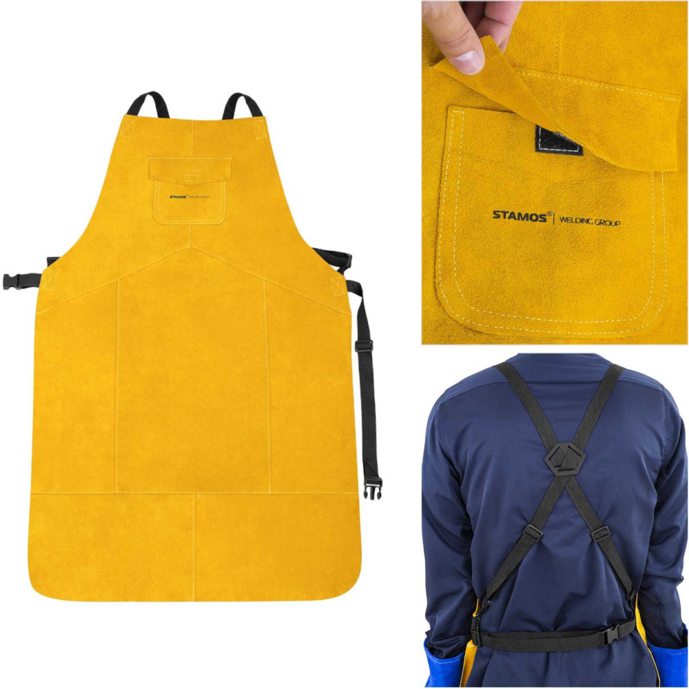 Les bretelles réglables répartiront uniformément le poids, permettant d'éviter des douleurs au dos et aux épaules du soudeur. Enfiler et enlever le tablier a été simplifié grâce à une