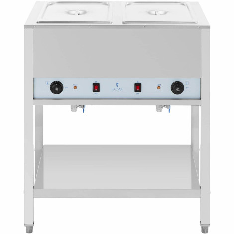 2 kontejneri GN S poklopcima (GN 1/1) možete istovremeno staviti sve komponente ili nekoliko jela kao što su meso, riba, povrće, riža, krumpir i umak, ne brinući se da će izgorjeti. Hrana grijač savršeno zadovoljava ugostiteljske potrebe i prikladne za uporabu u restoranima, hotelima, snack barovima, kafićima na kantine, bife, pa čak iu mirnom domu i klinikama. BEMAR ima veliku