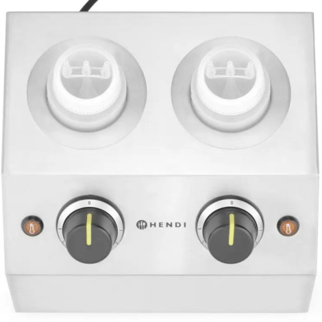 201725Hendri umakni grijač Ovo je savršen alat za održavanje čokoladnog umaka i drugih toplih umaka na pravoj temperaturi, što olakšava prelijevanje sladoleda, palačinke i drugih deserta. Samo stavite bocu u grijač i sadržaj će se zagrijati na postavljenu temperaturu. Promjenom razine temperature možete jednostavno dobiti rjeđe ili gušće čokoladni umak. Kućište uređaja izrađeno je od nehrđajućeg čelika. Temperatura se može podešavati s 6-korakom od 30 do 65deg C. Uređaj ima zaštitu od pregrijavanja. Kontrolna žaruljica označava grijanje. Skup uključuje bocu od 350 ml kapaciteta od 650 ml, 1 za svaki grijač.