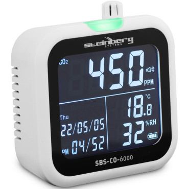 10030968Mjerač ugljičnog dioksida Steinberg Systems Omogućuje vam da kontrolirate njegovu vrijednost i temperaturu i vlažnost. Jasno