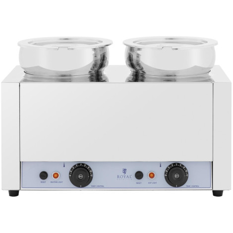 10012771Stanica juhe brand Royal Catering Radit će u restoranu, restoranu ili maloj gastronomiji za održavanje topline, gulaš, čokolade ili krem sira fondue. Stanica ima dva okrugla posude s kapacitetom