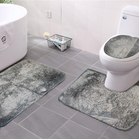 Izrađeni od mekog, upijajući materijal Shaggy tip, komplet učinkovito upija vlagu, pružajući udobnost i sigurnost uporabe. Univerzalna, siva boja i jednostavan dizajn čine tepisi odgovaraju svakom unutrašnjosti od modernog do klasičnog.