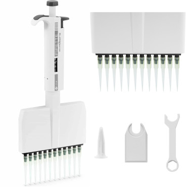 10031246Steinberg višekanalne pipete Sustav je idealan za nošenje tekućina u laboratorijima, školama ili kod kuće. 12-kanalna pipeta opremljena je preciznim proljećem, tako da je dovoljno da pritisne gumb za budalu i izmjeriti tekućinu s danim volumenom, a gumb se jednako polako vraća u početni položaj. Uređaj se može upravljati s jednom rukom, a količina tekućine se kontrolira pomoću rotiranog klipa. Na ručici se nalazi čitljiv, 3 - Digitalni prikaz kapaciteta. Višekanalna pipeta glava rotira 360Deg, olakšavajući uzorkovanje. Uređaj omogućuje učinkovitu zamjenu korištenih savjeta. Cijela je bila izrađena od plastike, koja je izdržljiva i iznimno svjetla.
