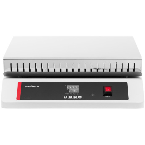 45 x 35 cm Ploča nudi mjesto za razna jela, kao što su tikvice Erlenmeyer ili okrugli donji tikvice. Glatka aluminijska površina je lako čisti i posebno otporna na vanjske čimbenike - baš kao i čvrsta željezna baza. Zahvaljujući stabilnoj gradnji i visokoj kvaliteti, laboratorijska ploča za grijanje može održavati težinu