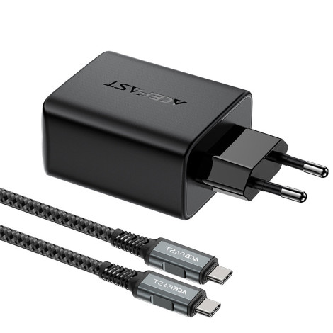 1020648Brzi 2In1 mrežni punjač acefast. Ima USB C port, koji vam omogućuje da učitate s maksimalnom snagom od 65W i 5W USB porta. Koristite UBS t tip dodatak za prijenosna računala koja zahtijevaju napajanje na 65W za rad (provjerite specifikaciju njihovog računala). Omogućuje vam da brzo učitavate dva uređaja u isto vrijeme m.in. U PPS-u, isporuku napajanja, brzu naplatu 3.0, AFC i FCP standarde. Izrađena je od vatrootpornog PC materijala. Opremljen je mnogim kolateralima kao što je prije pregrijavanja, prenapona, visokog napona ili preopterećenja. Uključeno s punjačem, postoji USB kabel C - USB tip C s duljinom od 1,8 m. Elektroničke komponente punjača napravljene su u GAN tehnologiji, pa se temelje na galium nitrida, a ne na silicij. GAN je bolja učinkovitost rada i potrošnje energije.