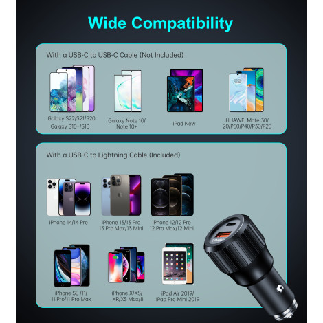 1024260Choietech TC0010 auto punjač Radi s napajanjem do 63 W i omogućuje vam da napunite dva uređaja u jednom trenutku. Ona radi savršeno s GPS navigacijom, smartphone, fotoaparatom ili tabletom. Pruža visoku razinu sigurnosti zahvaljujući ugrađenoj zaštiti od pregrijavanja, prenapona, preopterećenja ili kratkog spoja.