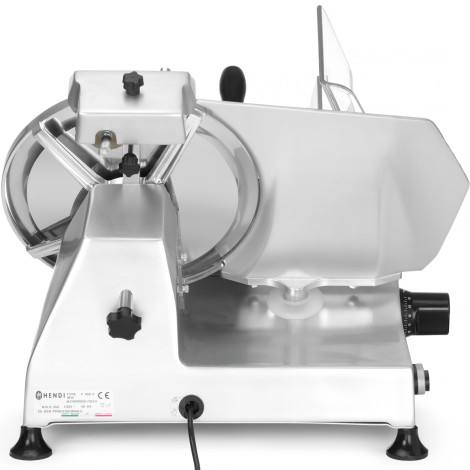 Talijanski Uređaj koji se ističe s visokom motorom koja osigurava sposobnost rezanja tvrdih kobasica, sira, hladnih rezova i mesa i riba (bez kostiju). Debljina reza podesiva s gumbom u rasponu