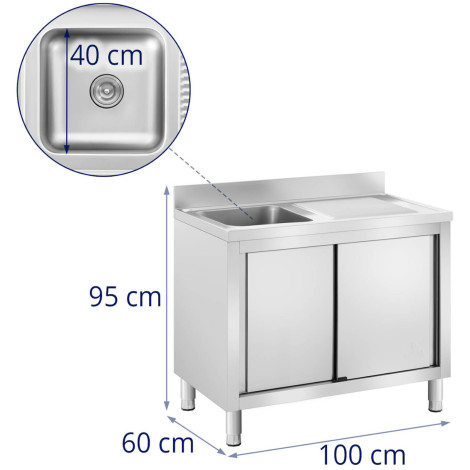 na lijevoj strani kabineta. U idealnom slučaju prikladan za čišćenje dubokih lonaca ili pečenih listova. Visoki zidovi štite od ekološkog susreta. U odljevu