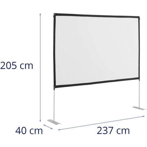 0,4 mm Nemojte se zgrabiti nakon odvijanja i pružaju idealnu površinu za projekciju. Ako je potrebno, jednostavno ga očistite vlažnom krpom. Stabilni čelični okvir i noge su vrlo jednostavni, bez alata. Zaslon projektora je slobodan, zbog čega ga možete koristiti mobitel. Kruti materijali su prikladni za uporabu unutar i izvan prostorija. Zahvaljujući transportnom kovčegu, lako je prenijeti cjelinu u odabrano mjesto.