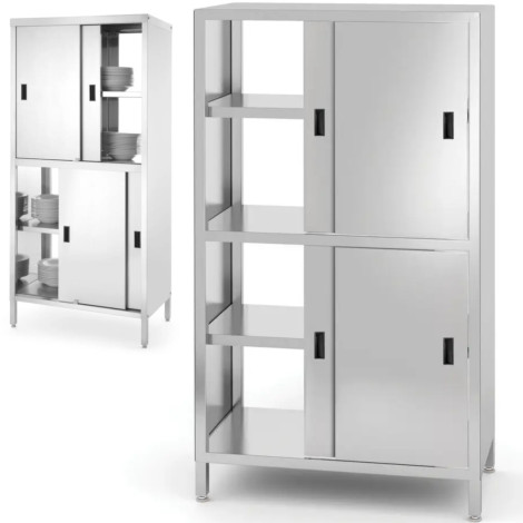 811634Garderoba s Hendi klizač vrata Ovo je komad namještaja pomoću profesionalne ugostiteljske kuhinje. Napravljen je s najvišim nehrđajućim čelikom za AISI 430. Glatka površina kućišta osigurava jednostavno čišćenje. Njezin elegantan izgled čini ga savršeno prikazivanjem na kuhinji.