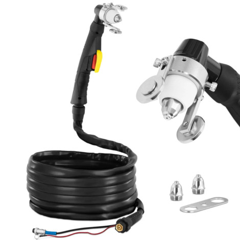 500 V. Omogućuje vam da učinkovito izrezati metale i dobiti optimalne rezultate. Plazma plamenik je vjerojatno u ruci, a zaštitno kućište je čak pogodan za zahtjevni rad. Kada prolazite 220 l / min, plamenik se pouzdano ohladi i proizvodi stabilan luk plazme koji osigurava optimalno rezanje metala. Žica ima duljinu od 5 m. Opremljen je plinskim priključkom s m16x1,5 niti.